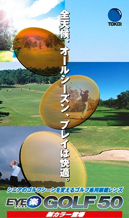 「EYE楽GOLF50」はシニアのための趣味レンズをコンセプトに開発し、ゴルフに最適な眼鏡レンズの素材、設計、二次加工を組み合わせた専用商品、ゴルフを行なう時に感じる不快をなくし、快適にゴルフが楽しめる視機能向上ゴルフ専用レンズとして2005年10月に発売して以来、大変好評を得てきました。